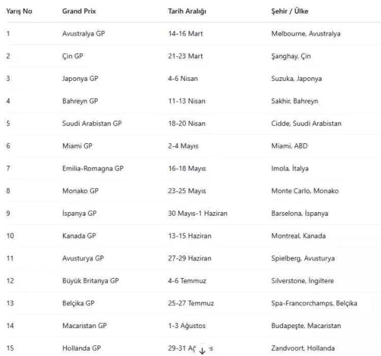 2025 takviminde Avustralya, Japonya, İtalya, Monako, Brezilya ve Abu Dabi gibi ikonik yarış noktalarının yanı sıra, Las Vegas ve Katar gibi yeni nesil pistler de yer alıyor. Ayrıca Çin Grand Prix'si de uzun bir aranın ardından yeniden takvime dahil edilmiş durumda.