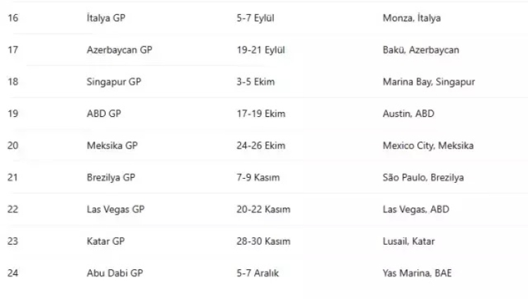 2025 Formula 1 takvimi: Hangi şehirler ev sahipliği yapacak