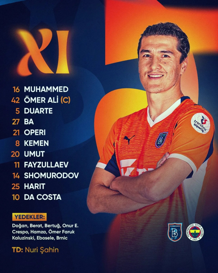 Başakşehir - Fenerbahçe maçının ilk 11'leri