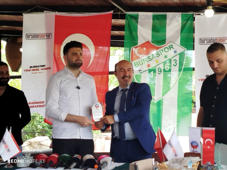 TSYD Bursa Şubesi Başkanı Mehmet Ali Ekmekçi, düzenlenen kahvaltı etkinliğinin sonunda Bursaspor Kulüp Başkanı Enes Çelik'e plaket takdim etti. Ekmekçi, Bursaspor'un gösterdiği başarılı performans ve kulübün geleceğine yönelik katkıları için Çelik'e teşekkürlerini sunarak, ona bir plaket verdi.