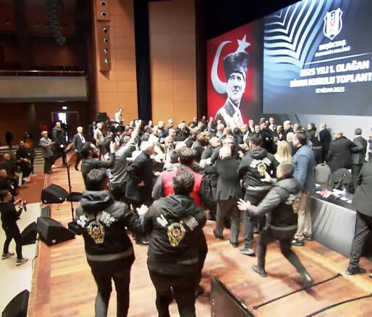 Beşiktaş Başkanı Arat, konuşma yaparken salonda başlayan gerginlik sonrasında kürsüde fiziki saldırıya uğradı.