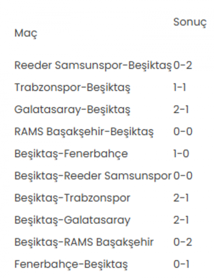 Siyah-beyazlılar, üçüncü basamakta bulunan ve Avrupa kupaları için mücadele ettiği Samsunspor'u ise deplasmanda 2-0 yenerken, sahasında 0-0 berabere kaldı.