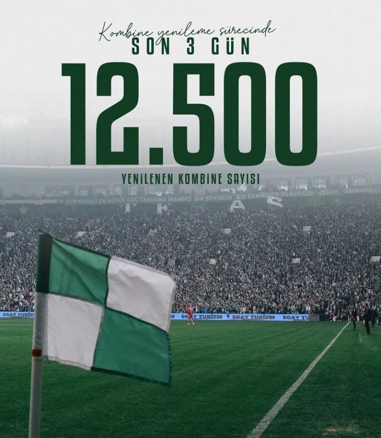 Bursaspor, 30 Mart'ta başlayan kombine yenileme sürecine son 3 gün kala toplan 12 bin 500 kombine yenilendiğini açıkladı.