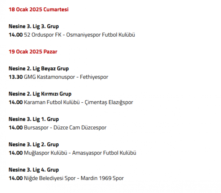 TFF'nin yayınlayacağı diğer maçlar şöyle;