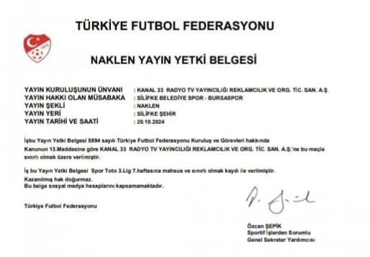 Bursaspor'un hafta sonu karşılaşacağı Silifkespor maçının yayınlanacağı kanal belli oldu.