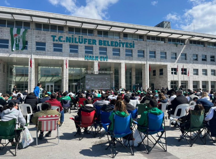 Nilüfer Belediyesi, bugün oynanan Artvin Hopaspor-Bursaspor maçı için belediye önünde dev ekran kurdu.
