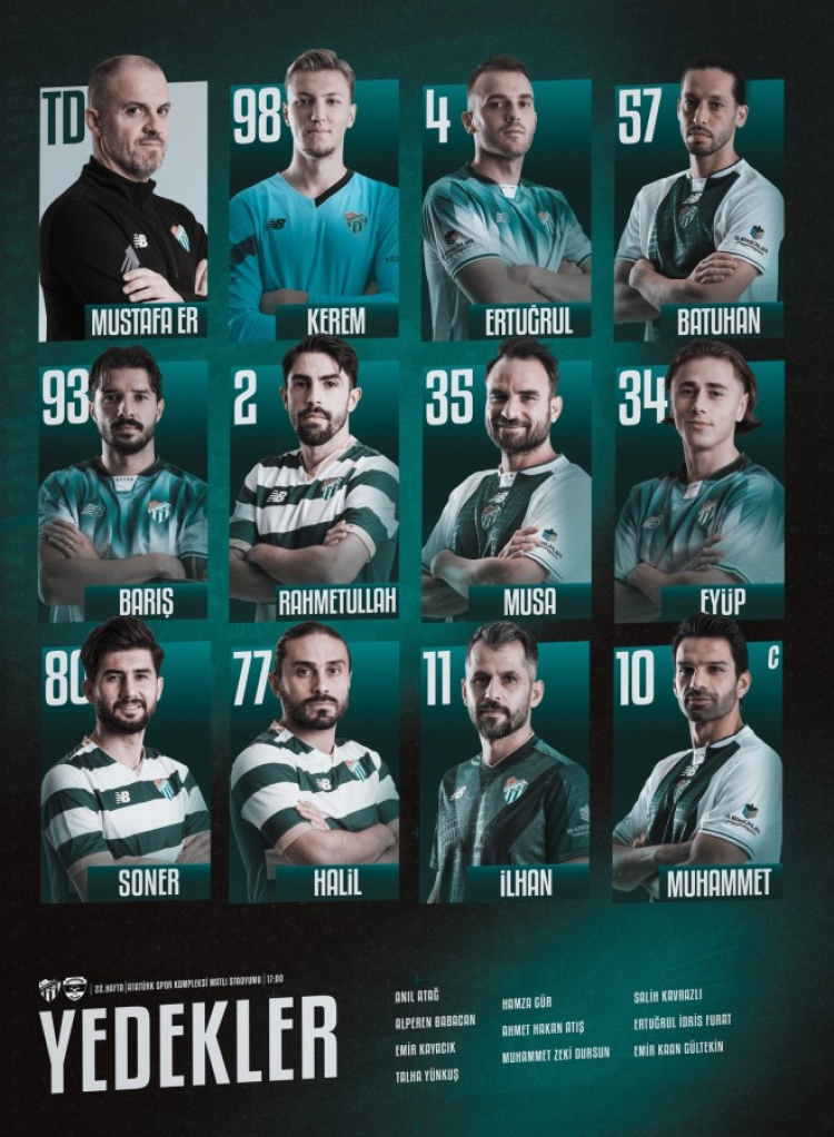 Bursaspor, Adanaspor ile oynayacağı karşılaşmanın ilk 11'ini açıkladı.