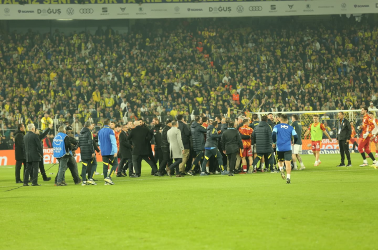 Kulüp yöneticileri ve güvenliğin araya girmesi ile sona eren tartışma sonrası takımlar kendi ısınma alanlarına geçti.