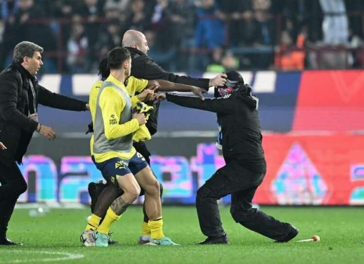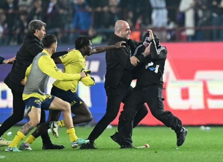 Yaşanan kaos sırasında saha içindeki bir an ise dikkat çekti. Trabzonspor yardımcı antrenörü Egemen Korkmaz'ın Fenerbahçe kalecisi İrfan Can Eğribayat'a yumruk atmaya çalıştığı görüldü.