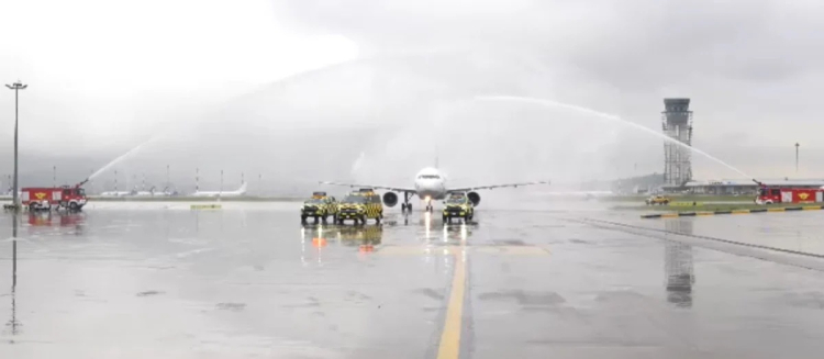 EuroLeague zaferiyle Avrupa’nın en büyüğü unvanını kazanan Fenerbahçe Beko, şampiyonluk kupasıyla yurda döndü. Takımı taşıyan uçak, saat 17.00 sularında İstanbul Sabiha Gökçen Havalimanı’na iniş yaptı. Şampiyonlara özel bir karşılama düzenleyen Havalimanı İşletme ve Havacılık Endüstrileri A.Ş. (HEAŞ), uçağın pistten park alanına ilerleyişi sırasında su takı seremonisi gerçekleştirdi.