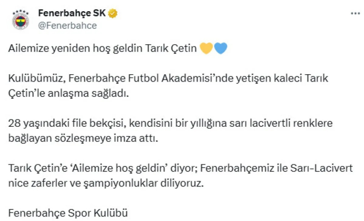 Fenerbahçe Tarık Çetin transferini resmen duyurdu