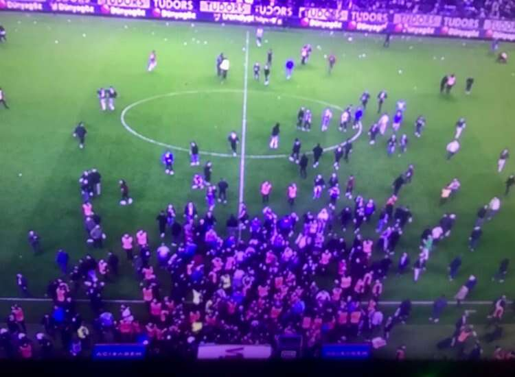 Güvenlik güçleri, sahanın dolması üzerine olayları yatıştırmakta zorluk çekti! Fenerli oyuncular soyunma odasına zor kaçtı!
