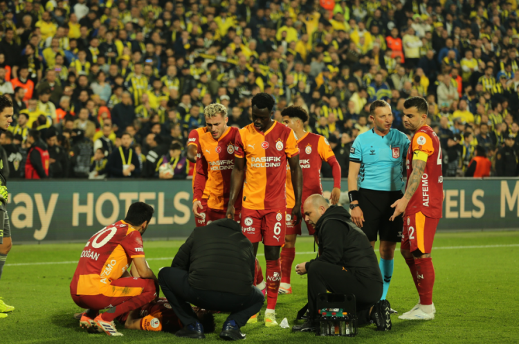 37' Fenerbahçe yarı alanının ortalarında yaşanan hava topu mücadelesinde kafa kafaya çarpışan Barış Alper ve Edson Alvarez sakatlık yaşadı. İki oyuncunun tedavileri sebebiyle oyun durdu.