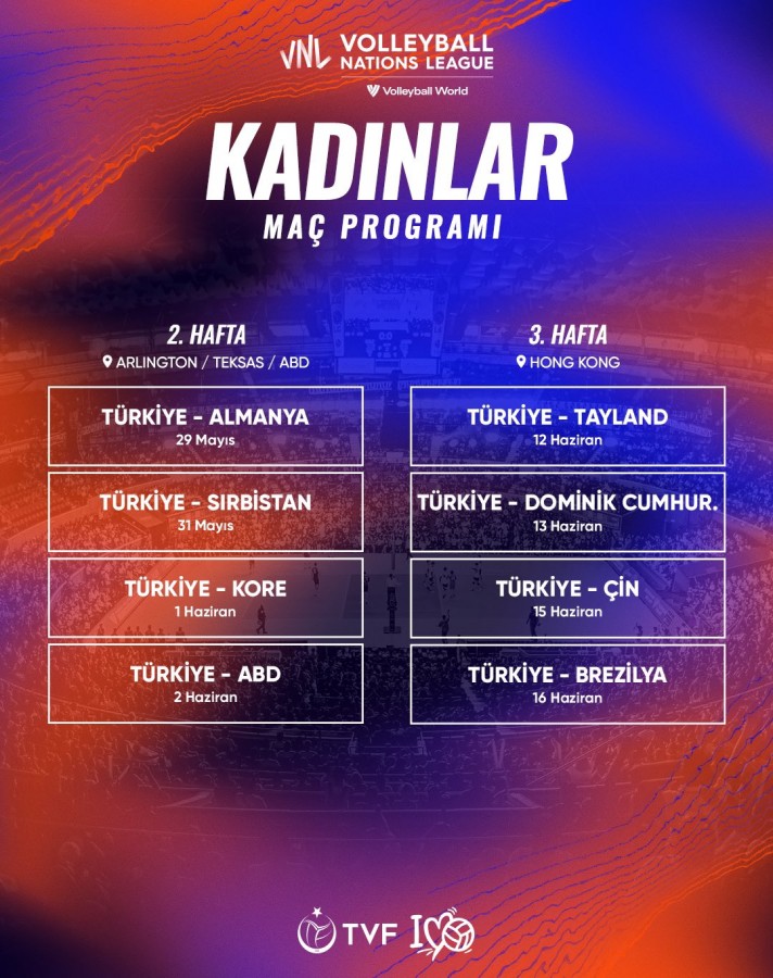A Milli Kadın Voleybol Takımı'nın 2024 Milletler Ligi'nde oynayacağı maçların programı belli oldu.