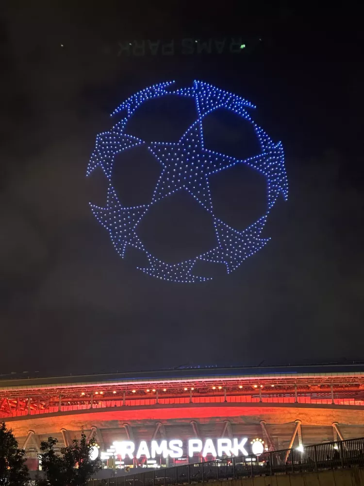 Dronlar farkı noktalardan havalanarak, stadyuma ulaştı.