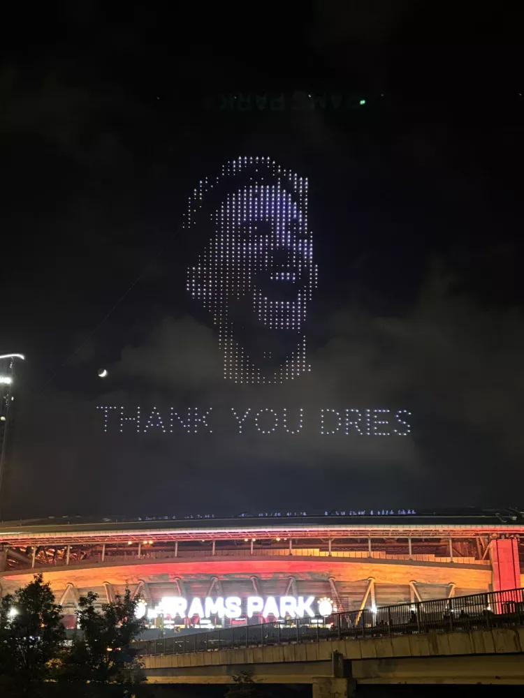 Dronlarla Şampiyonlar Ligi logosu, Ali Sami Yen, 5 yıldız ve onların alındığı tarihler, Fernando Muslera, Dries Mertens, Victor Osimhen’in Antalyaspor maçındaki röveşatası ve maskesi, Okan Buruk, 25 yazılı 5 yıldızlı logo ve 5 yıldızlı Galatasaray logosunun görselleri yapıldı.