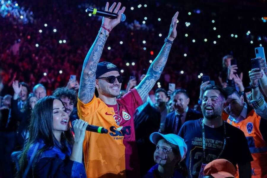 Galatasaray'ın şampiyonluk kutlamasına Mauro Icardi ve ünlü şarkıcı Simge Sağın düeti damga vurdu.