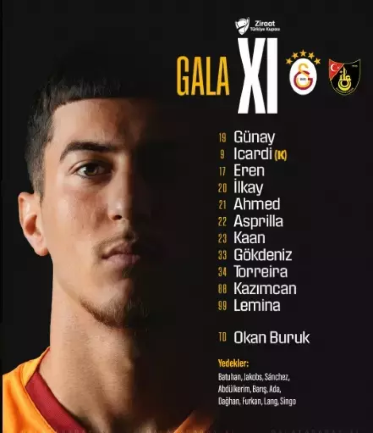 Noa Lang, Sane, Abdülkerim, Davinson Sanchez veBarış yedekler arasında yer alıyor.