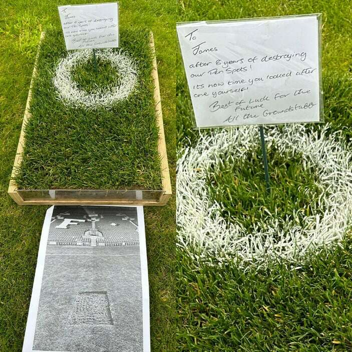 Anfield Stadyumu'nun zemin bakım ekibi de Kırmızı'ların penaltıcısı olan Milner'a, penaltı noktasını hediye etti.