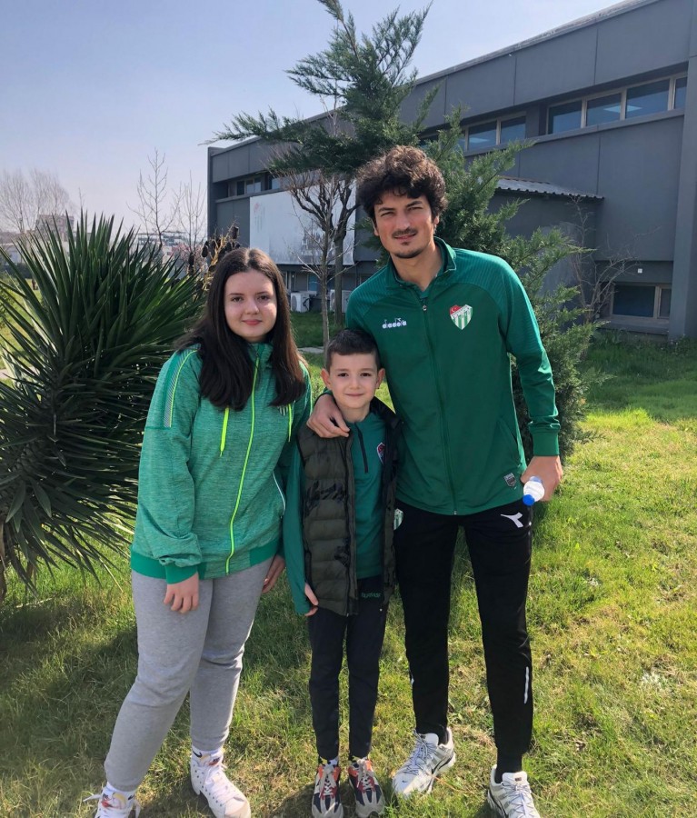 Futbolcularla sohbet edip fotoğraf çektiren Minik Timsahlar, Bursasporlu oyunculara Serik maçı için moral verdi ve alkışlarla stadyuma uğurladı.