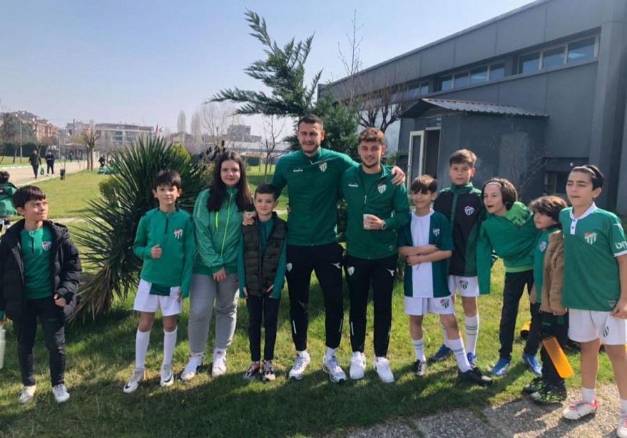 Bursaspor Futbol Okulu'na katılan minik Timsahlar, Bursasporlu futbolculara moral verip başarılar diledi.
