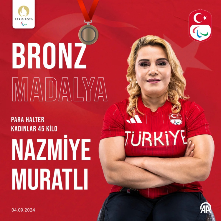 Paris 2024 Paralimpik Oyunları'nda para halterde milli sporcu Nazmiye Muratlı, kadınlar 45 kiloda bronz madalya kazandı.