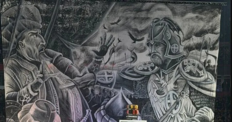 Tribünlerde dakikalarca Türkler aleyhine tezahüratlar yapılırken açılan skandal pankart büyük tepkiye neden olmuştu.