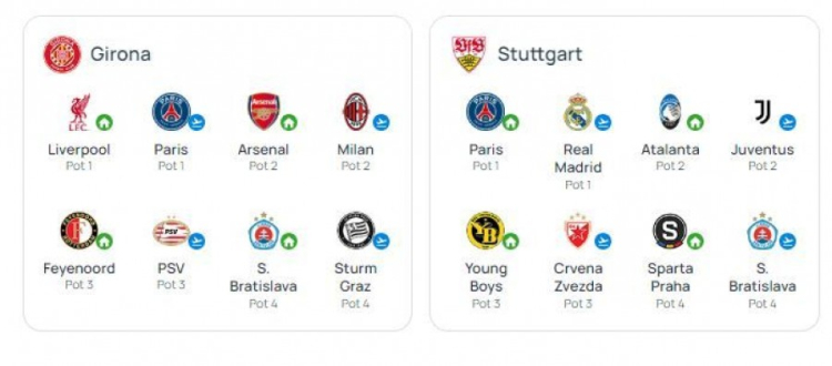 Girona ilk kez yer alacağı Şampiyonlar ligi'nde çok kötü bir kura çekti. Yine de eleme aşamasını zorlayacaktır. Stuttgart 4 zor rakibe rağmen diğer takımlar karşısında alacağı puanlarla eleme turunu görebilir.