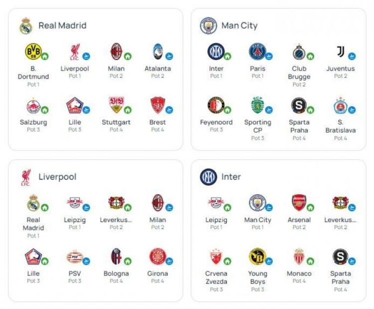 Real Madrid, Liverpool kolay bir kura çekti. Inter'inki orta seviye. Manchester City ise 3 çok iyi takımla eşleşse de diğer maçları kolay.