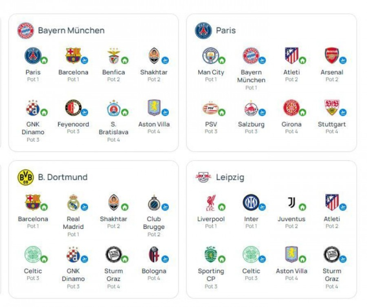 Bayern iki güçlü rakibine karşın kolay bir kura çekti. PSG ise 4 çok sağlam takımla eşleşerek kuranın en şanssız takım görünümünde. Diğer maçları nispeten kolay. Dortmund ise 2 İspanyol devi dışında güzel kura çekti. Leipzig de kura şanssızlarından en az 5 güçlü rakibi var. İşleri çok zor.