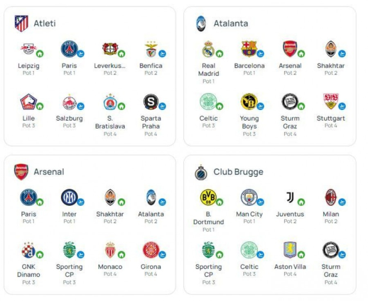 Atletico Madrid'in kura şansı yanındaydı. Atalanta ise 3 güçlü rakibe rağmen eleme turuna yükselmesini sağlayabilecek kolay sayılabilecek 5 maç oynayacak. Arsenal ise yine şanslıydı, nispeten iyiye yakın bir kura çekti. Club Brugge'un işi çok zor. 5 çok güçlü takımı çekti.
