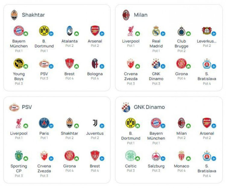 Shakhtar 4 dişli rakiple eşleşti. Ancak diğer rakiplerinden alacağı puanlarla elemelere yükselebilir. Milan 3 güçlü rakibe rağmen gereken puanı alabilir. PSV 4 çok sağlam t akımla eşleşti, işleri zor. Dinamo Zagreb'in şansı neredeyse sıfır.