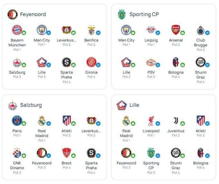 Feyenoord'un mucize yaratması gerekecek. SportingLizbon ise 2 çok güçlü rakibe rağmen eleme turuna çıkacaktır. Salzburg 4 dev takımla eşleşti, ancak diğer rakiplerinin hepsini yenebilir. Fenerbahçe'yi eleyen Lille ise kabus gibi bir kura çekti. 5 aşırı güçlü rakibi var. İşi mucizelere kalmış durumda.