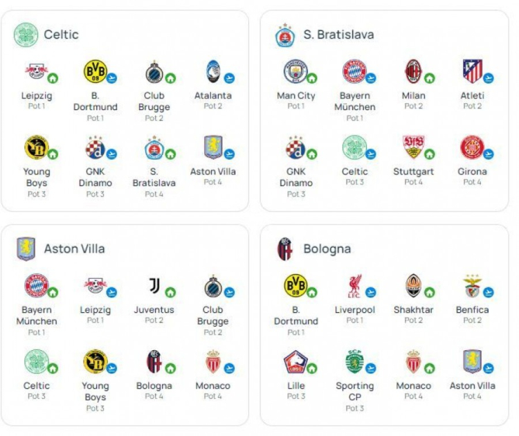 Celtic güzel kura çekti, eleme turlarına kalacaktır. Slovan Bratislava için Şampiyonlar Ligi şimdiden bitmiş gibi görünüyor. Aston Villa gereken puanı alabileceği rakiplere sahip. Motta'yı kaybeden Bologna'ın neredeyse kolay rakibi yok, işleri çok zor.