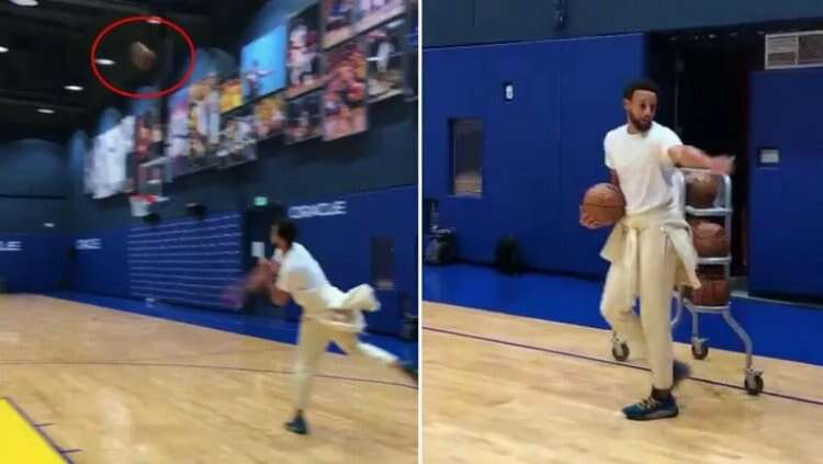 İdmanda basketbol şovu yapan Amerikalı yıldız Stephen Curry saha dışından kullandığı şutu deliksiz soktu. Üst üste atışlarına devam eden Curry inanılması güç şekilde yaklaşık 25 metreden 5 atışı birden potadan geçirdi.