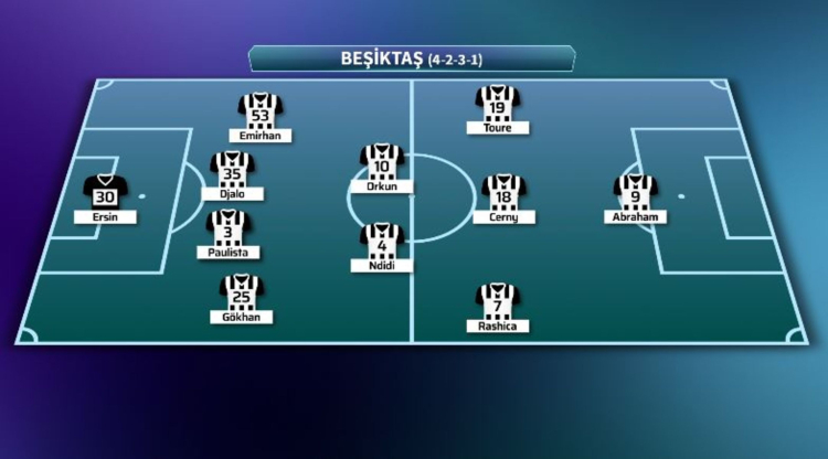 Beşiktaş: Ersin, Gökhan, Paulista, Djalo, Emirhan, Ndidi, Orkun, Rashica, Cerny, Toure, Abraham