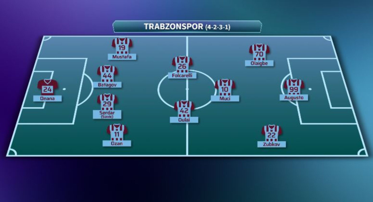 Trabzonspor: Onana, Mustafa, Batagov, Serdar (Savic), Ozan, Oulai, Folcarelli, Muçi, Olaigbe, Zubkov, Augusto