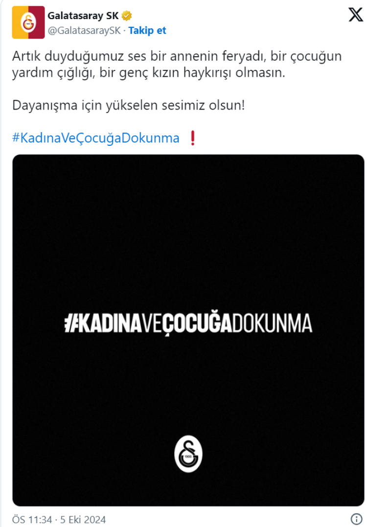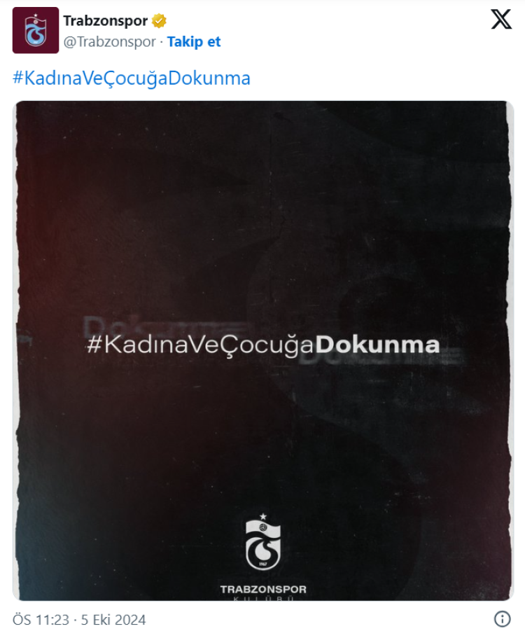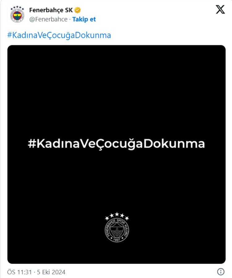Takımlardan 'kadına ve çocuğa dokunma' paylaşımı