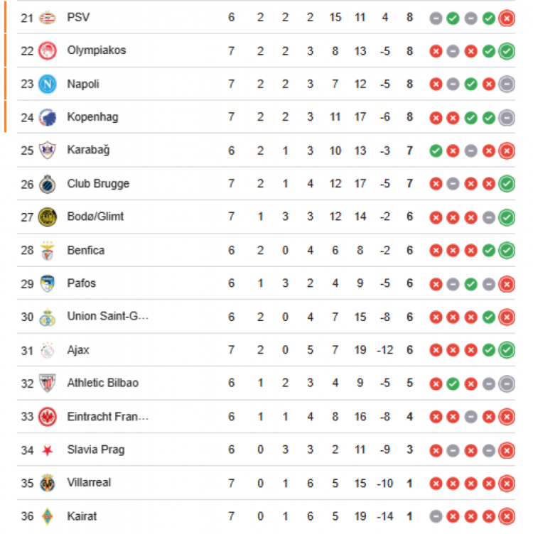 Galatasaray, UEFA Şampiyonlar Ligi'nde Union SG ve Monaco karşılaşmalarından mağlubiyetle ayrılmasının ardından puan tablosunda 18. sıraya geriledi. Sarı-kırmızılı ekip, Devler Ligi'nde oynadığı maçlarda 3 galibiyet ve 3 beraberlik elde ederken, topladığı 9 puanla orta sıralarda yer aldı.