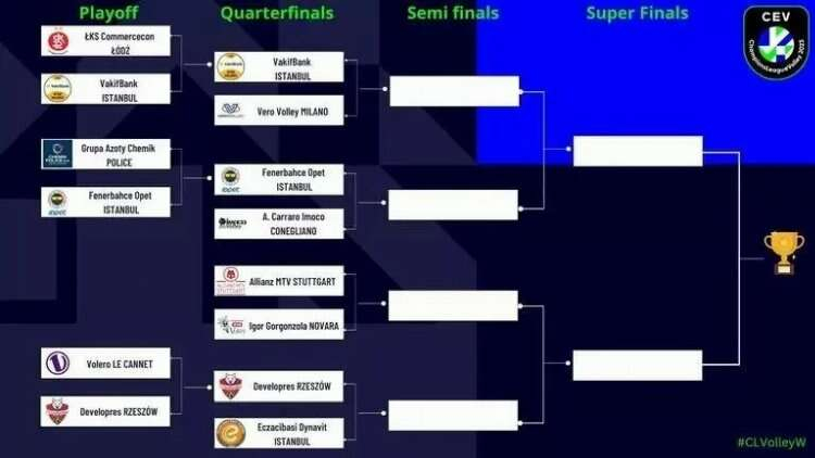 Avrupa'da CEV Şampiyonlar Ligi'nde mücadele eden kadın voleybol takımlarımız adeta tarih yazdı. Eczacıbaşı, VakıfBank ve Fenerbahçe çeyrek final ilk maçlarını kazandı. Temsilcilerimiz bu hafta rövanş maçlarını kazanması halinde adlarını yarı finale yazdıracak. Vakıfbank'ın turu geçmesi halinde olası rakibi ise Fenerbahçe olacak. Bu durumda ise CEV Şampiyonlar Ligi finalinde bir Türk takımının yer alması kesinleşecek.