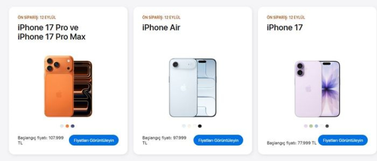 iPhone 17 Air (128GB): başlangıç fiyatı 97.999 TLiPhone 17: başlangıç fiyatı 77.999 TL