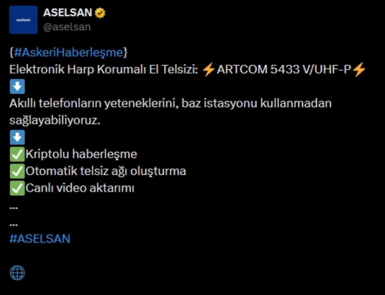 Lübnan'daki patlamaların ardından ASELSAN, geliştirdiği yerli ve milli el telsizi "ARTCOM 5433 V/UHF-P"nin görsellerini paylaşarak, güvenli haberleşme için yenilikçi çözümler sunduğunu duyurdu.