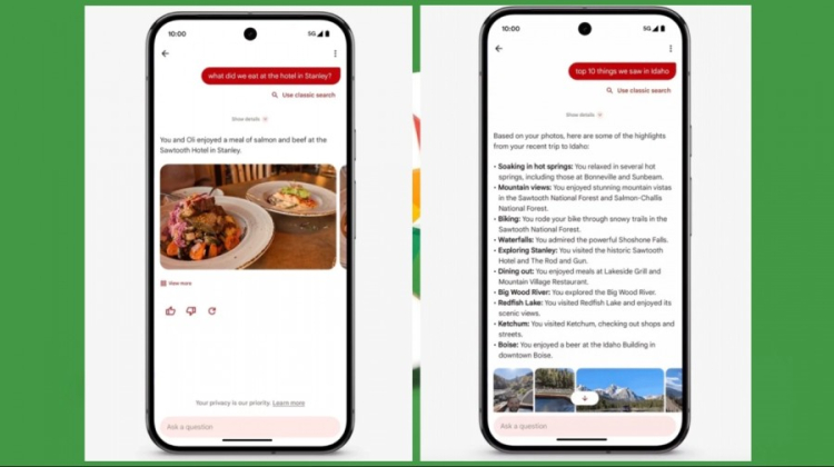 shiftdelete'nin haberine göre; Özellik, Google'ın Gemini AI modeli tarafından destekleniyor. Kullanıcılara, fotoğraf albümlerinde belirli anıları daha kolay bulmalarına yardımcı oluyor. Örneğin, bir kullanıcı "En son Eskişehir'e gittiğimizde nerede kaldık?" gibi bir soru sorduğunda Google Fotoğraflar, galerinizi tarayıp detaylı bir analiz yapıyor. Sonrasında soruya yanıt olarak ilgili fotoğrafları gösteriyor.