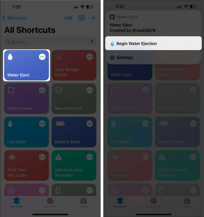iPhone'unuzun hoparlöründen suyu çıkarmanın bir başka hızlı yolu da "Water Eject" Siri kısayolunu kullanmaktır.