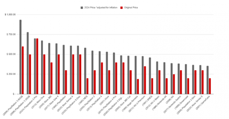 Konsol fiyatlarının hem o anki, hem de ABD'deki enflasyona göre değerleri... (IGN)
