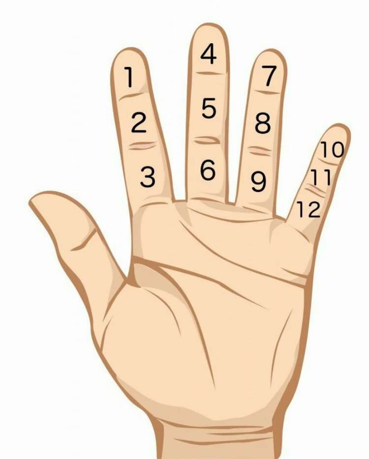 Evet ister inanın ister inanmayın, bunun nedeni tam da parmaklarımızın yapısıdır. Her eldeki parmak eklemlerinin sayısı (başparmak hariç), başparmağı kullanarak 12'ye kadar saymayı mümkün kılar.