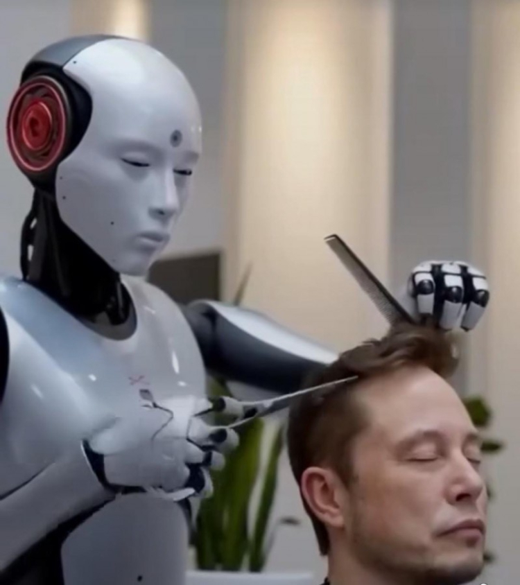 Yapay zeka ile oluşturulan bir video da bir robotun Elon Musk'ı tıraş ettiği anlar paylaşıldı.