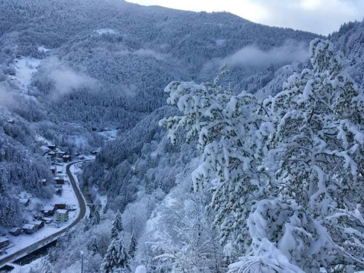 Yaz aylarında bölgeyi kaplayan çam ağaçları ve yemyeşil bitki örtüsü ile ilgi gören 1.090 rakımlı doğal güzellikleri ile ünlü turizm merkezi Uzungöl, nisan ayında yağan karla birlikte beyaza büründü.