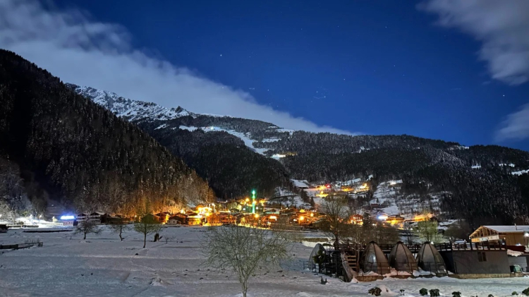 Gördüğünüz gibi Uzungöl'de dört mevsimi aynı anda yaşayabiliyoruz. Hava gayet soğuk ancak muazzam bir görüntü var. Bir tarafta baharın gelmesiyle montlarımızı çıkarmışken diğer yandan da bir anda gelen kar ile tekrar montlarımızı giymiş olduk. Burada muhteşem bir görüntü var. Dağlarımız yine karlandı. Herkese buraya gelmelerini tavsiye ediyorum.