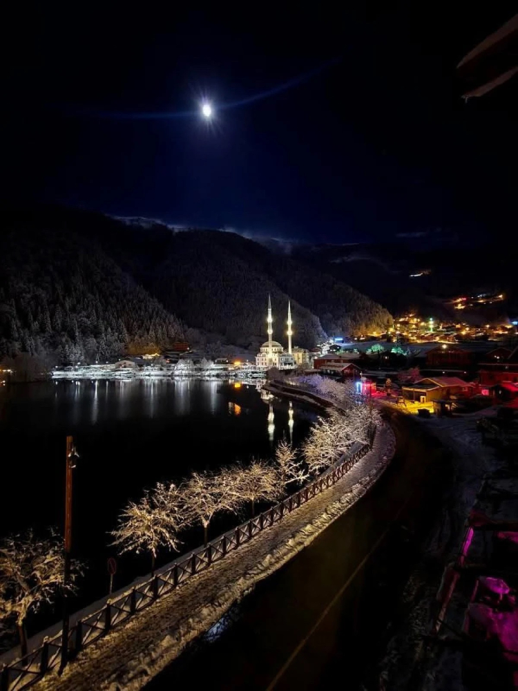 Trabzon'un Çaykara ilçesinde bulunan Uzungöl nisan ayında yağan karla beyaza büründü, böylece kartpostallık görüntüler ortaya çıktı.